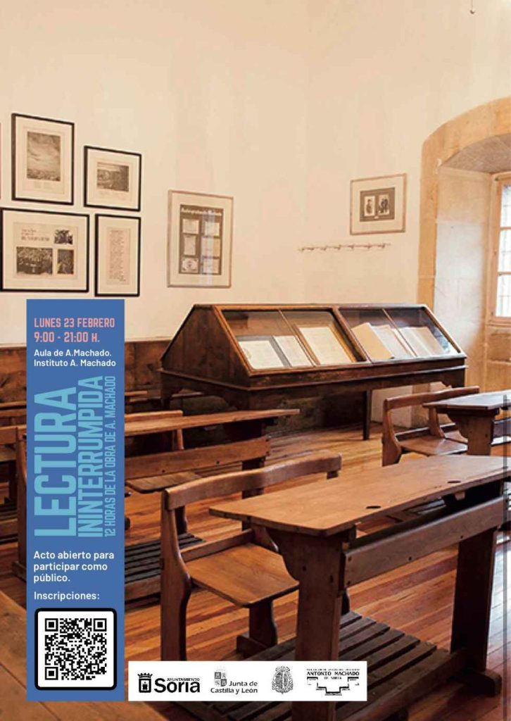 Durante doce horas consecutivas, la obra machadiana volverá a escucharse en el espacio donde impartió clase, convirtiendo el aula en un lugar de encuentro en torno a la literatura, la memoria y el legado cultural vinculado a Soria.