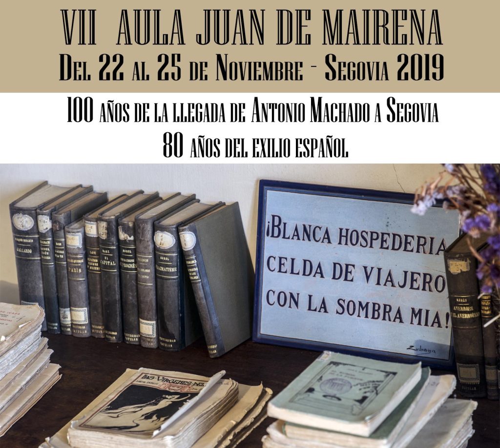Coincidiendo con la presidencia de la Red de Ciudades Machadianas durante 2019, Segovia acoge y organiza la VII edición del Aula Juan de Mairena, del 22 al 25 de noviembre, una de las actividades más importantes de celebración del Centenario de la llegada de Antonio Machado a la ciudad, en 1919.